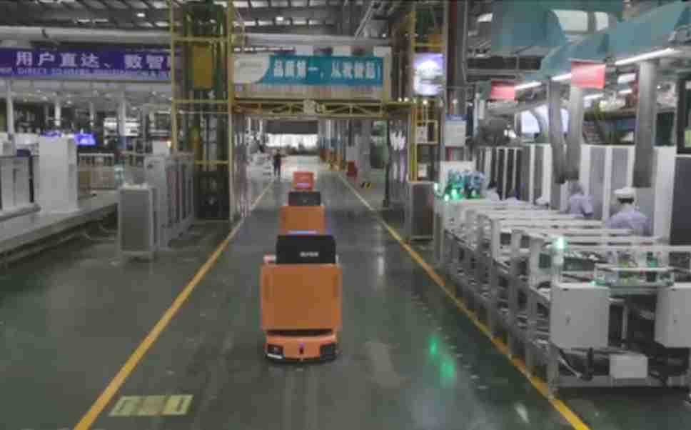 为车载冰箱物流配送打造的智能解决方案,,,,包含产中物流通过潜伏举升AMR搬运至线边,,,,产后成品物流智能仓储,,,,流程包含产中物流智能齐套入库,,线边安灯叫料AMR智能配送至线边,,,成品入库、、、出库,,,,通过无人堆高车机器人,,,,智能仓储管理替代人工作业管理,,,实现更高存储、、、、更高效率、、、、更具柔性化的解决方案。。。